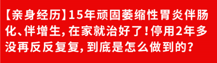 如果您或您的家人,和我曾经一样,正在遭受萎缩性胃炎、糜烂性胃炎、反流性食管炎,胃病已经伴肠化、伴增生,长期胃痛胃胀、反酸嗳气、烧心呕吐、黑便软便、消化不良,就不要再拖了!