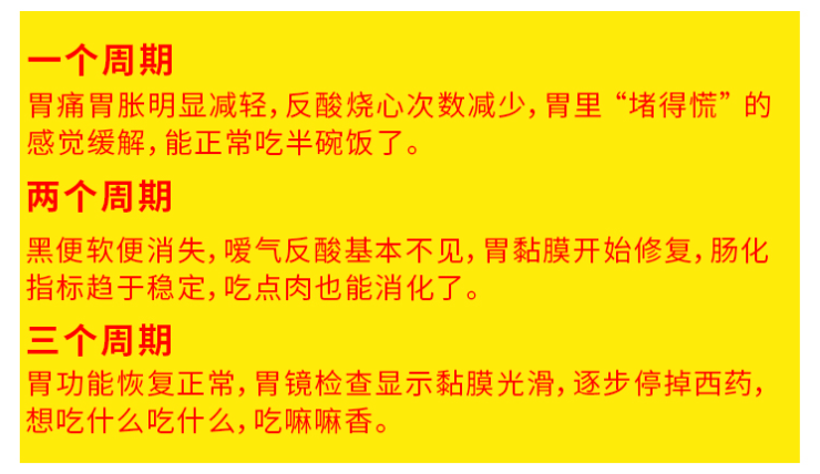 消除肠胃里的炎症,修复受损的胃黏膜。让胃重新变得厚实光滑,阻止肠化、增生进一步发展。